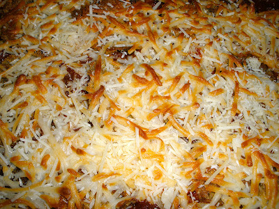 Use a 9x12 pan. Spray bottom of pan. Add meat sauce, battered eggplant and shredded mozzarella cheese. Layer again. Sprinkle with Parmesean Cheese.